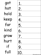 Put 10 Dolch Words in Alphabetical Order - Worksheet #20 Put 10 Dolch words in alphabetical order. The words are: far, full, got, grow, hold, hot, hurt, if, keep, kind. Go to the answers. |
