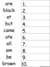 Put 10 Dolch Words in Alphabetical Order - Worksheet #5 Put 10 Dolch words in alphabetical order. The words are: all, am, are, at, ate, be, black, brown, but, came. Go to the answers. |