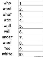 Put 10 Dolch Words in Alphabetical Order - Worksheet #9 Put 10 Dolch words in alphabetical order. The words are: too, under, want, was, well, went, what, white, who, will. Go to the answers. |
