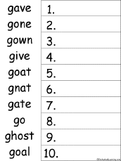 Put 10 G Words in Alphabetical Order - Worksheet Put 10 G words in alphabetical order. The words are: gate, gave, ghost, give, gnat, go, goal, goat, gone, gown. Go to the answers. |