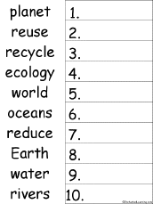 Put 10 Earth Day Words in Alphabetical Order - Worksheet Put 10 Earth Day words in alphabetical order. The words are: Earth, ecology, oceans, planet, recycle, reduce, reuse, rivers, water, world. Go to the answers. |