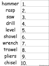 Put 10 Tools in Alphabetical Order - Worksheet Put 10 tools in alphabetical order. The words are: chisel, drill, hammer, level, pliers, rasp, saw, shovel, trowel, wrench. Go to the answers. |