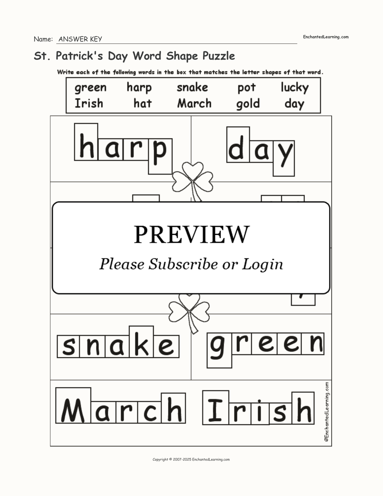 St. Patrick's Day Word Shape Puzzle