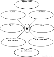 | Words that Start with V (in categories) Write words that start with the letter "v" and belong to the categories listed in the ovals. |