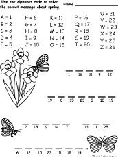 Spring Alphabet Code Use the alphabet code to find the secret Spring message. Answer: "April showers bring May flowers." |