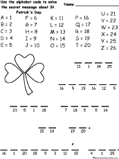 St. Patrick's Day Alphabet Code Use the alphabet code to find the secret St. Patrick's Day message. Answer: "Many people wear green on St. Patrick's Day." |