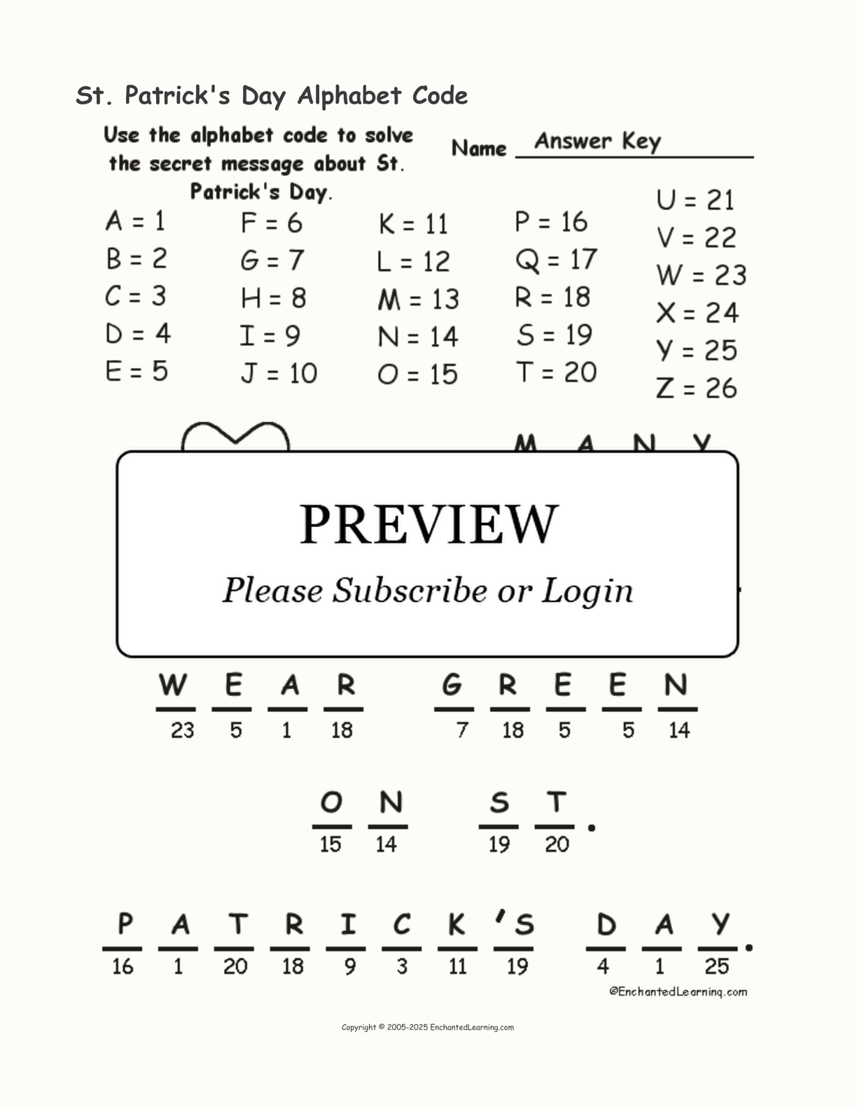Use the alphabet code to figure out the secret St. Patrick's Day message. This printable worksheet is for young students.