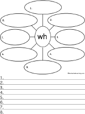 This is a thumbnail of the "Eight Words that Start with Wh: Find and write eight words that start with "wh," then use each word in a sentence" page. The full-size printout is available only to site members.