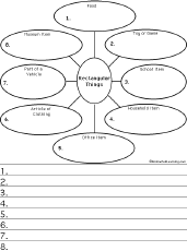 Find 8 Things for Each Color Worksheets On each printable worksheet, the student writes 8 items that are a particular color. Worksheets including red, pink, orange, yellow, green, blue, purple, brown, black, gray, white, black-and-white, all colors. |