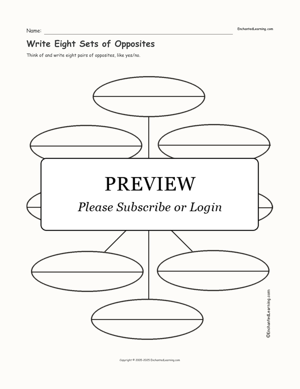Write Eight Sets of Opposites