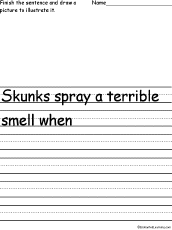 Finish the Sentence 'S' Finish the sentence and illustrate it - S. The sentence starts, "Skunks spray a terrible smell when..." |