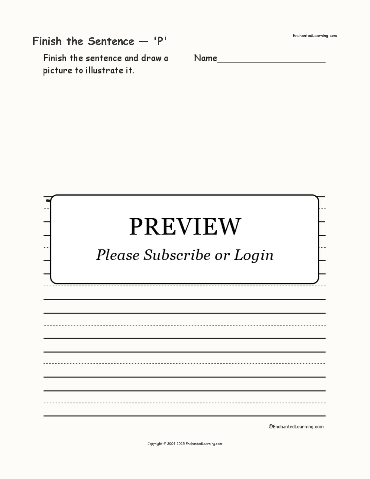 Finish the sentence and illustrate it - the letter P. The sentence starts, “The princess was in the palace playing with…” A printout about words for early readers.
