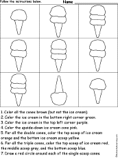 | Ice Cream Cones - Follow the Instructions | Ice Cream Page Follow the Instructions Printouts |