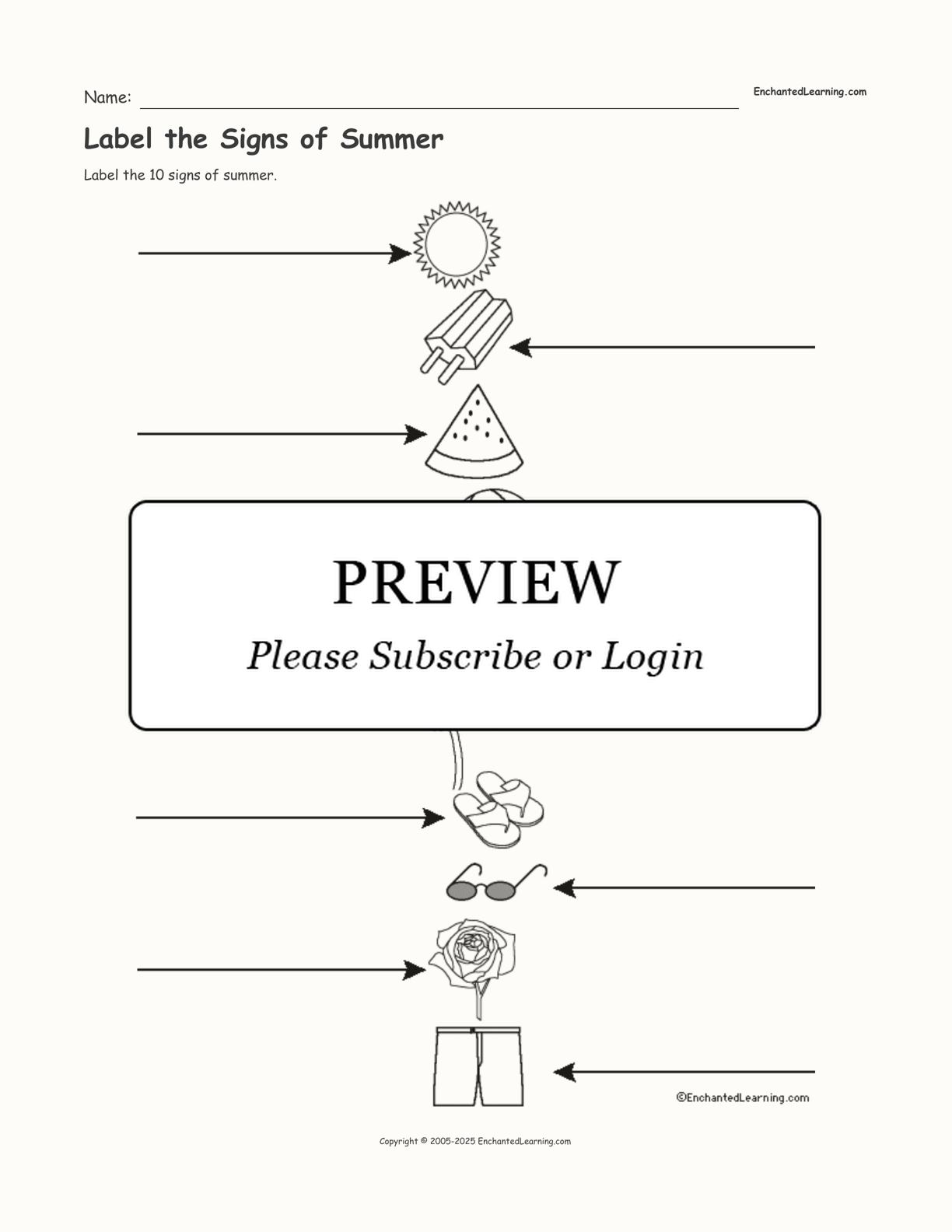 Label the 10 signs of summer.