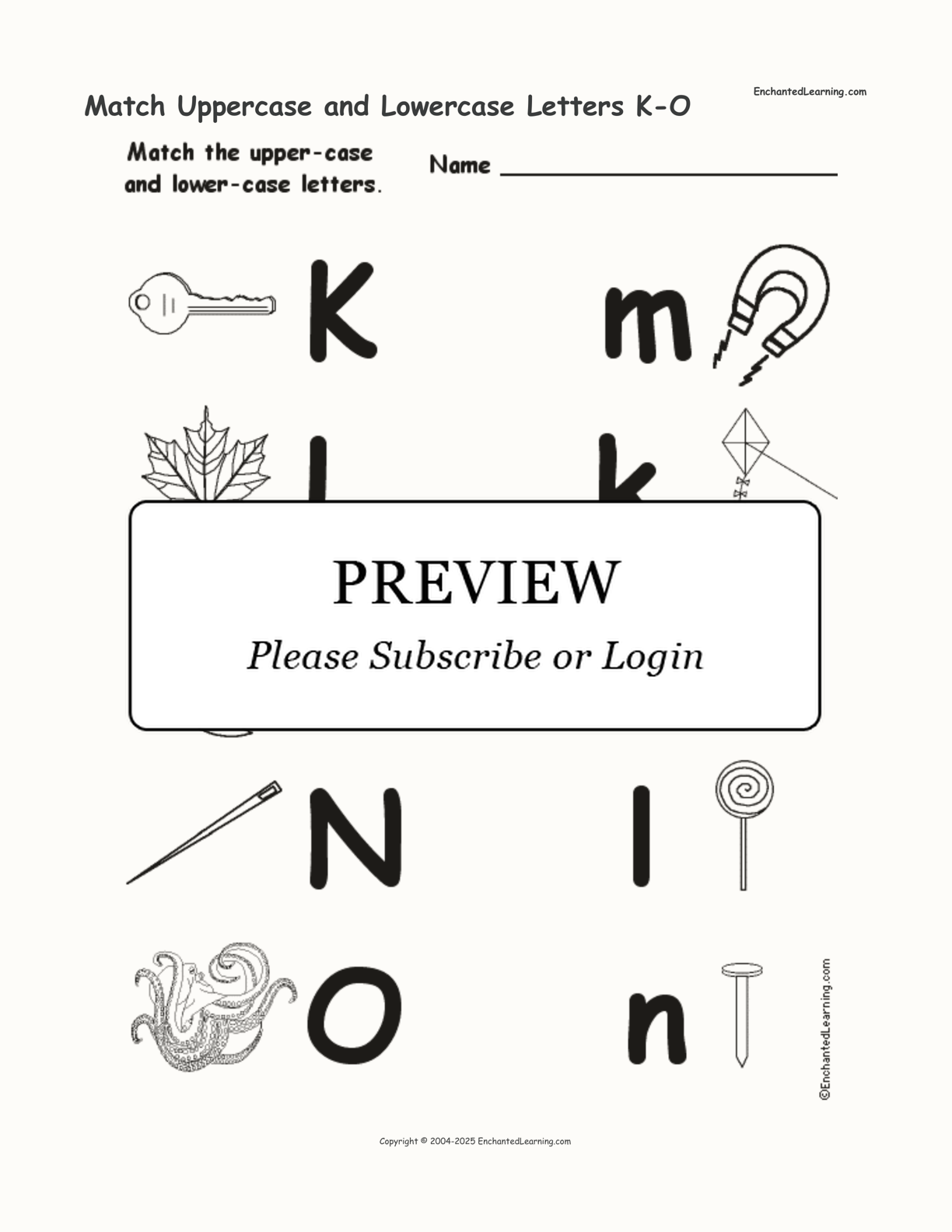 Match the uppercase and lowercase letters from K-O in this printout about letters for early readers.