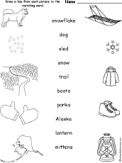 Match Winter Words and Pictures Match 10 winter vocabulary words to their pictures. The words are: skis, icicle, ice skates, snowflake, snowman, tree, sled, scarf, and glove. Or go to the answers. |