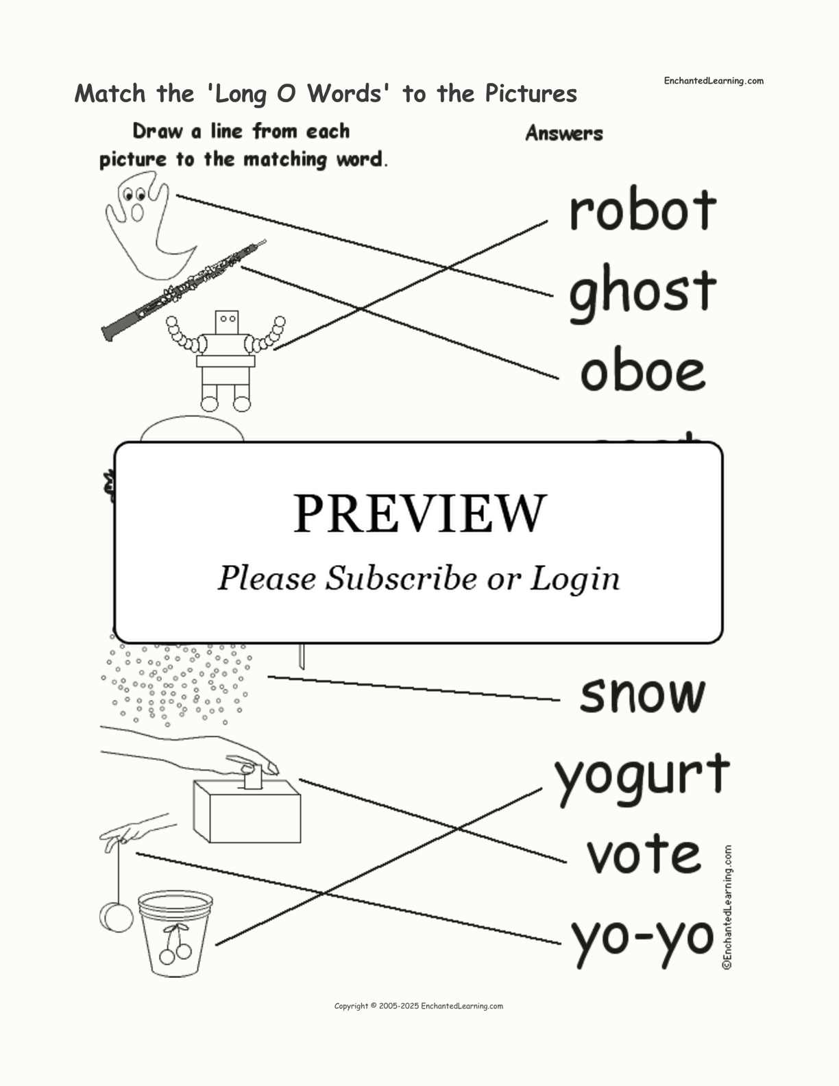 The words are: robot, ghost, oboe, goat, rose, oval, snow, yogurt, vote, and yo-yo.