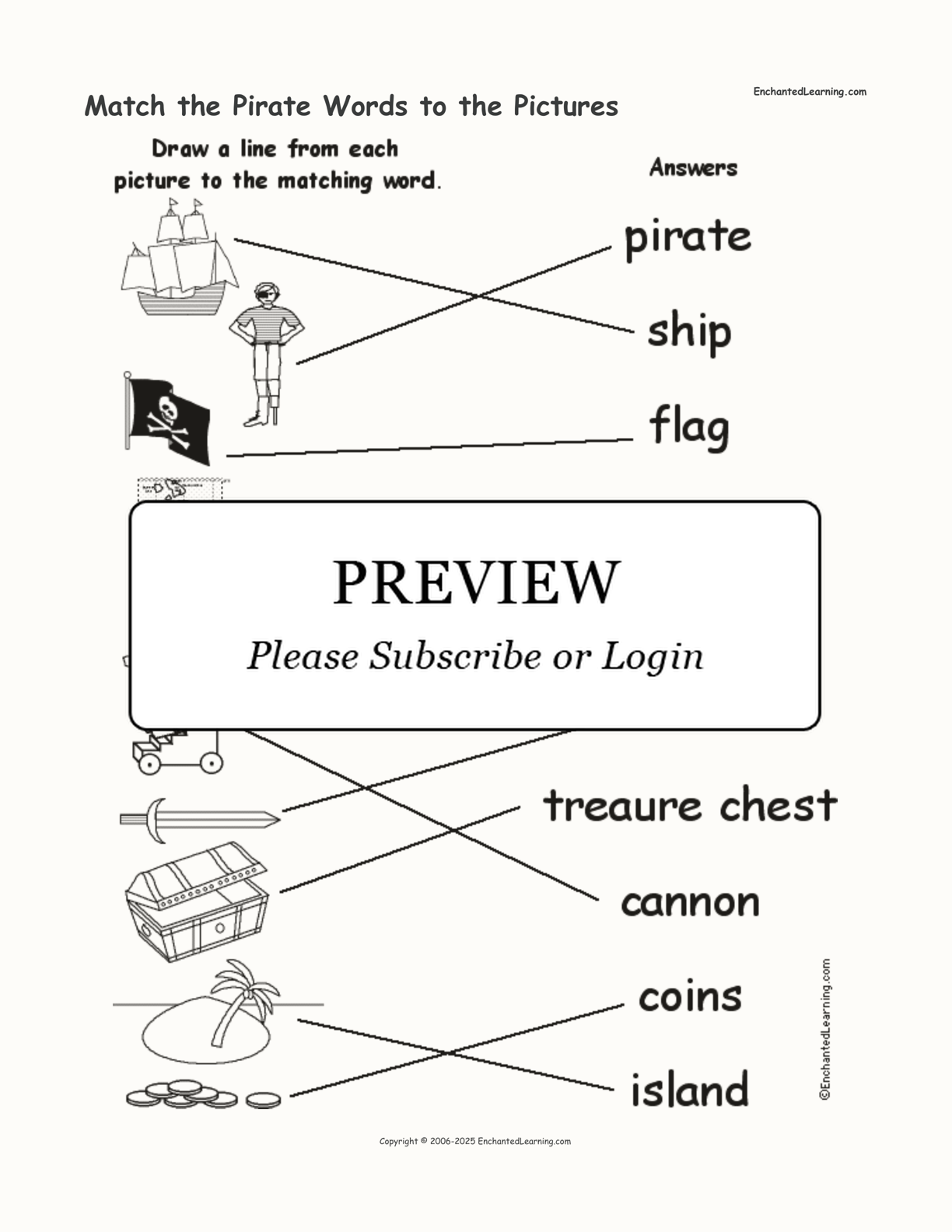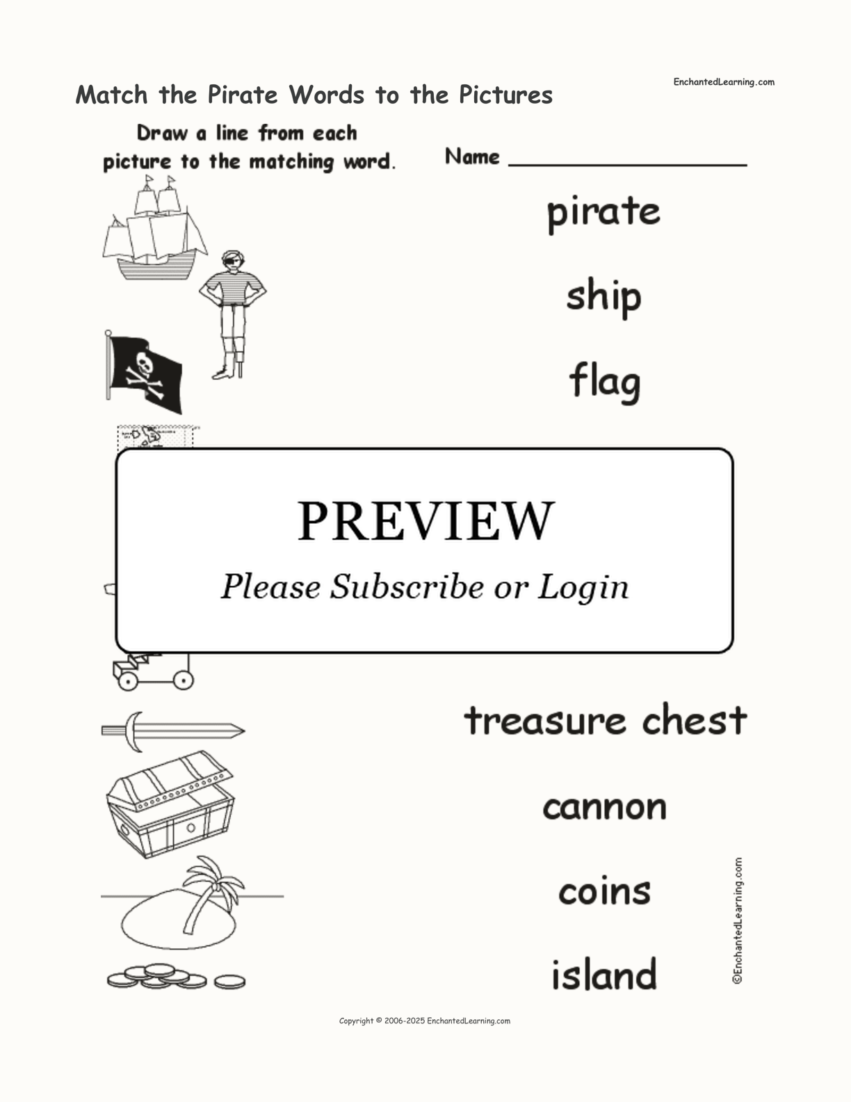 Match 10 pirate vocabulary words to their pictures, in this printout for early readers.
