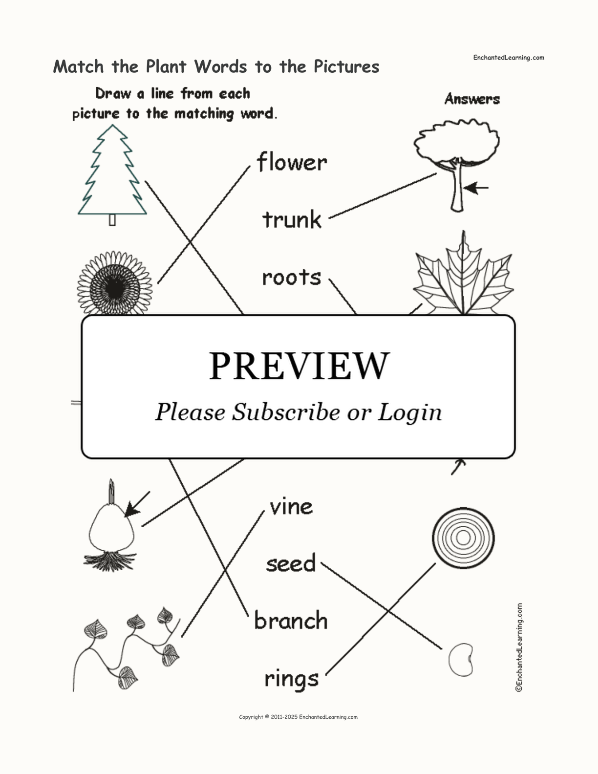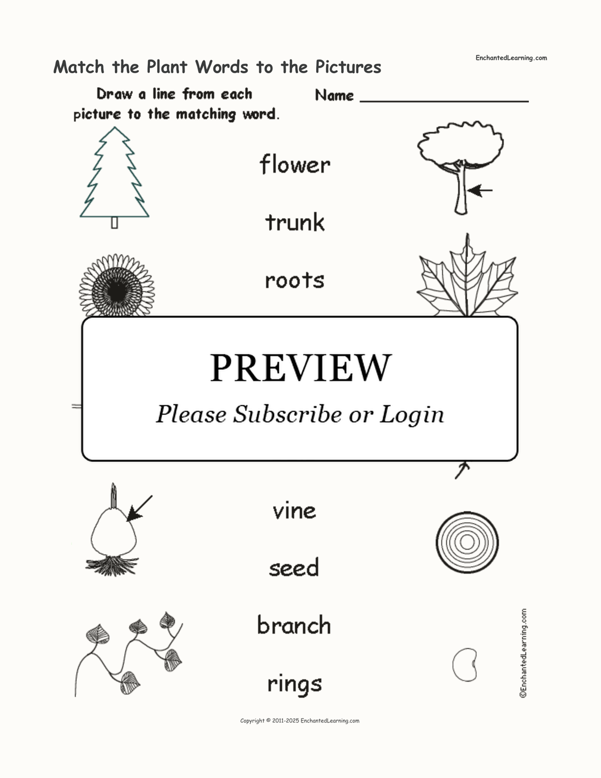 Match 10 plant-related words to their pictures, in this printout for early readers.