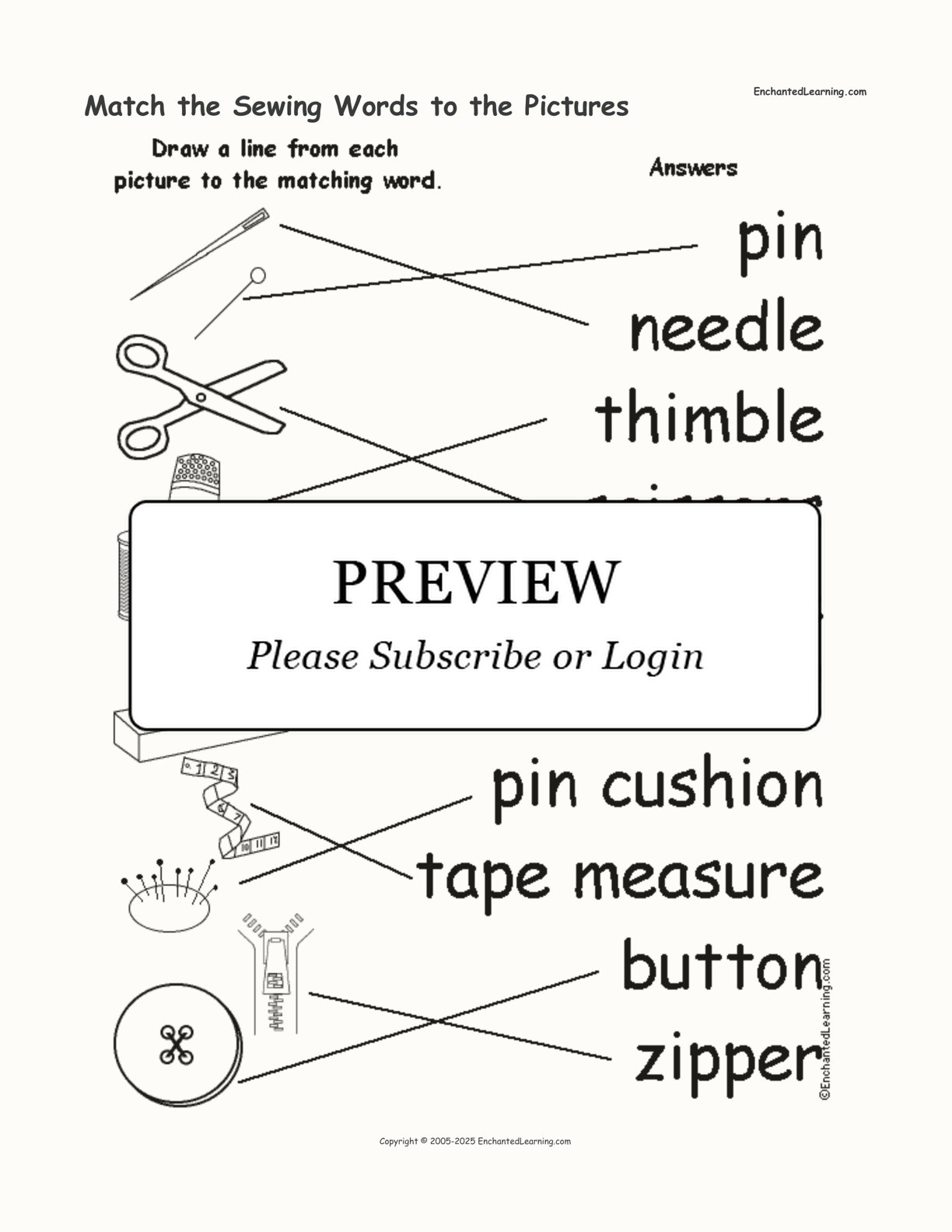 Match 10 sewing vocabulary words to their pictures, in this printout for early readers.