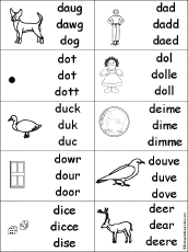 Circle the Correct Spelling of Long A Words Circle the correct spelling of the words that have a long a sound, and then color the picture of the word. The words are face, rain, ape, table, wave, acorn, say, gate, ray, snake. |