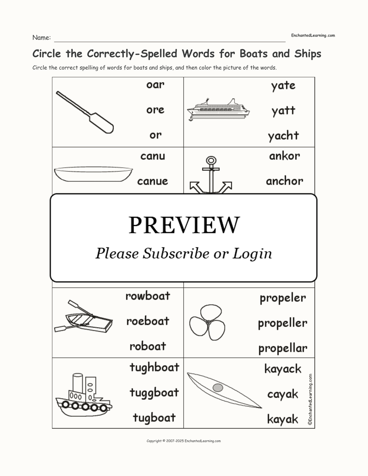 Circle the Correctly-Spelled Words for Boats and Ships
