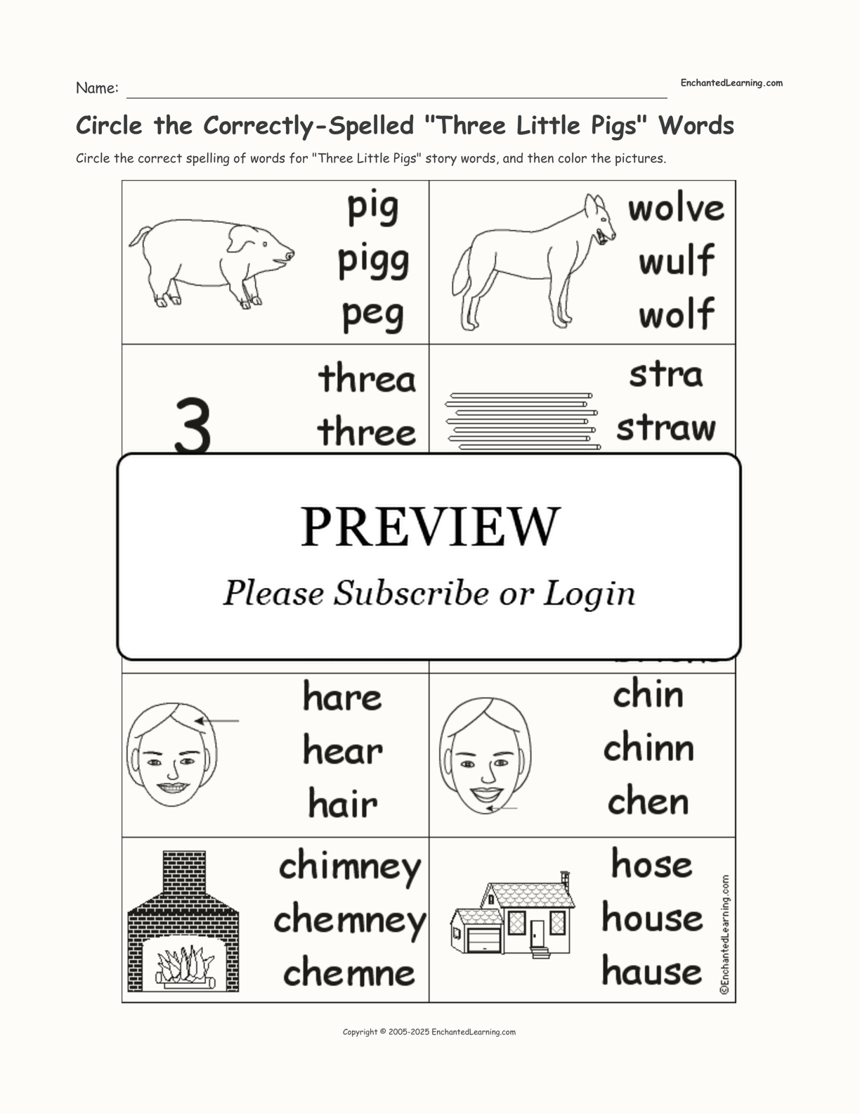 Circle the Correctly-Spelled "Three Little Pigs" Words