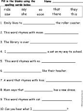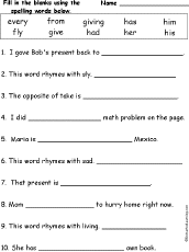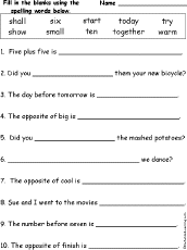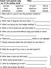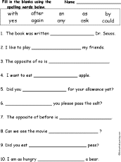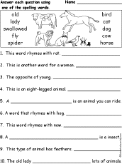 EnchantedLearning.com Spelling Word Questions: Worksheet Printouts In these worksheets, the student answers simple questions using a list of spelling words. |