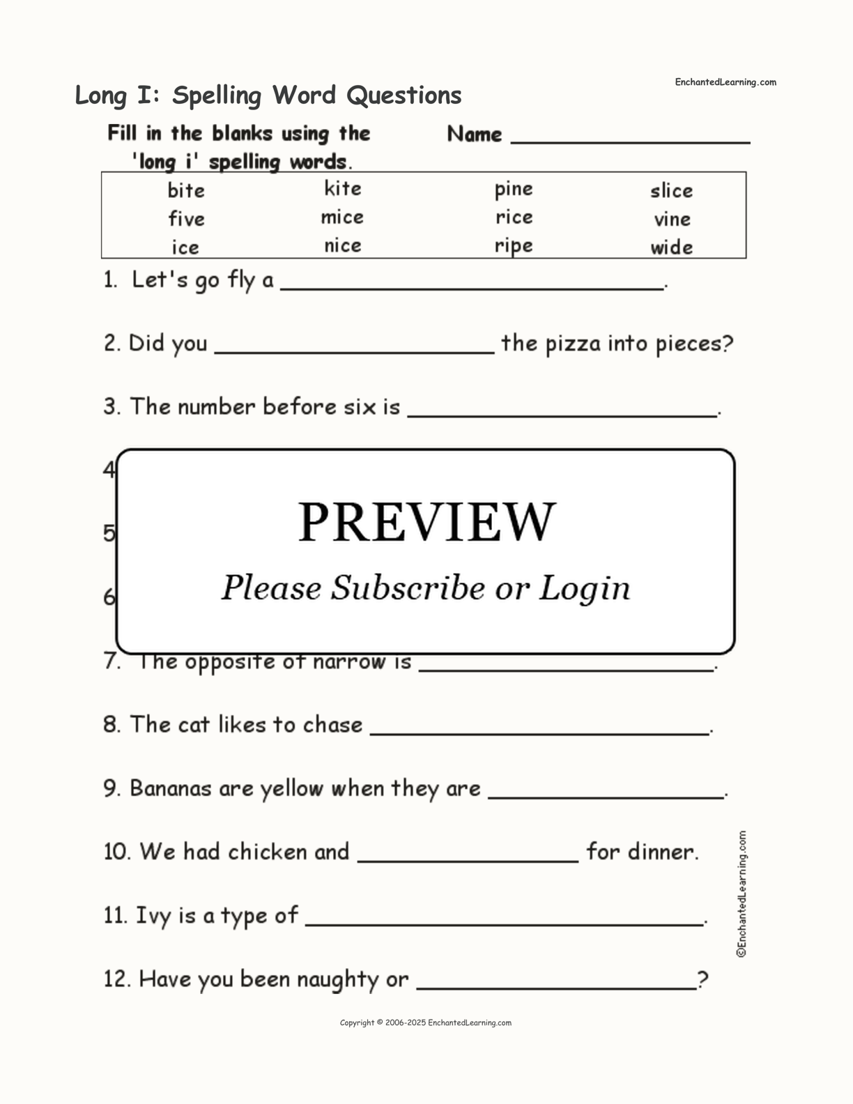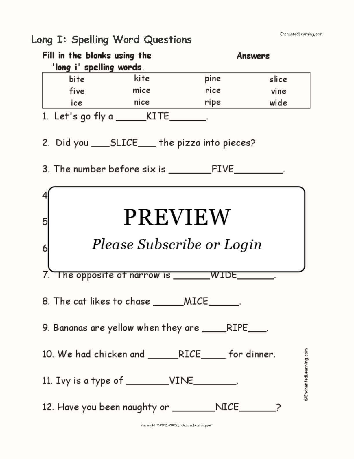 Use the list of ‘long i’ spelling words to answer simple questions.