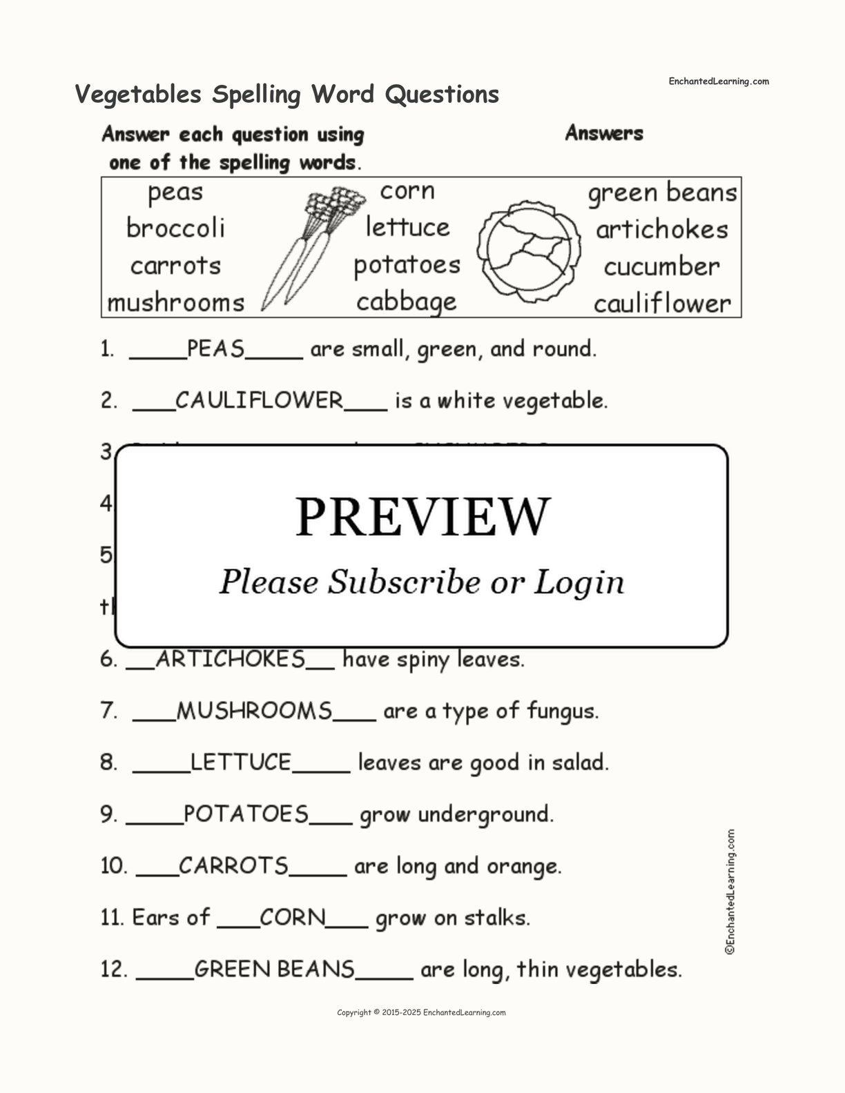 Vegetables Spelling Word Questions interactive worksheet page 1Vegetables Spelling Word Questions interactive worksheet page 2
