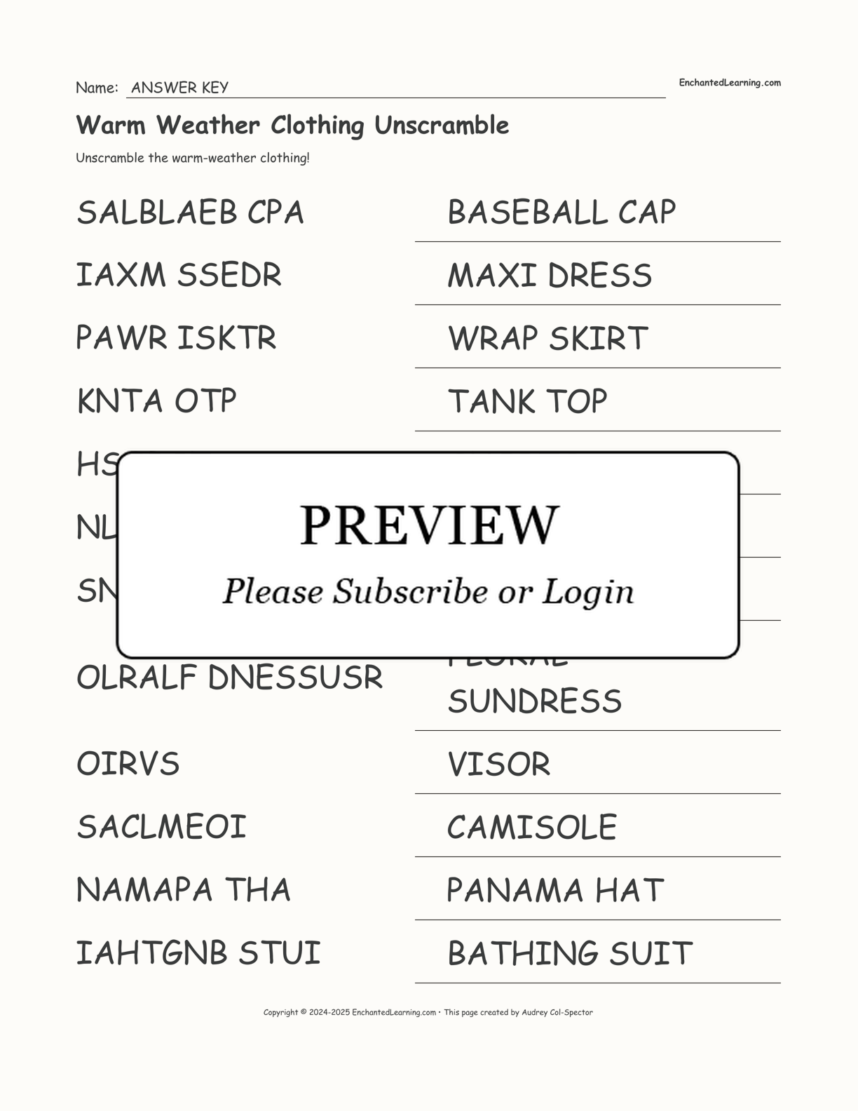 Baseball cap, Bathing suit, Camisole, Floral sundress, Maxi dress, Panama hat, Sandals, Shorts, Sun hat, Tank top, Visor, Wrap skirt