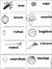 This is a thumbnail of the "Unscramble Vegetable Words" page. The full-size printout is available only to site members.