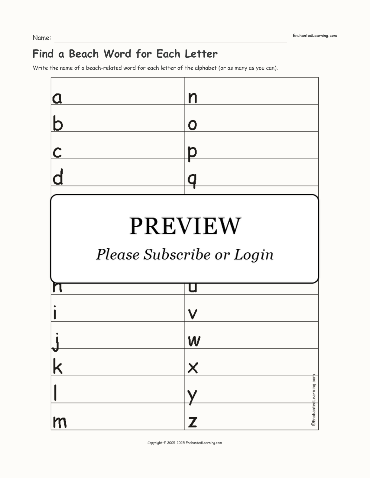 Write the name of a beach-related word for each letter of the alphabet (or as many as you can).