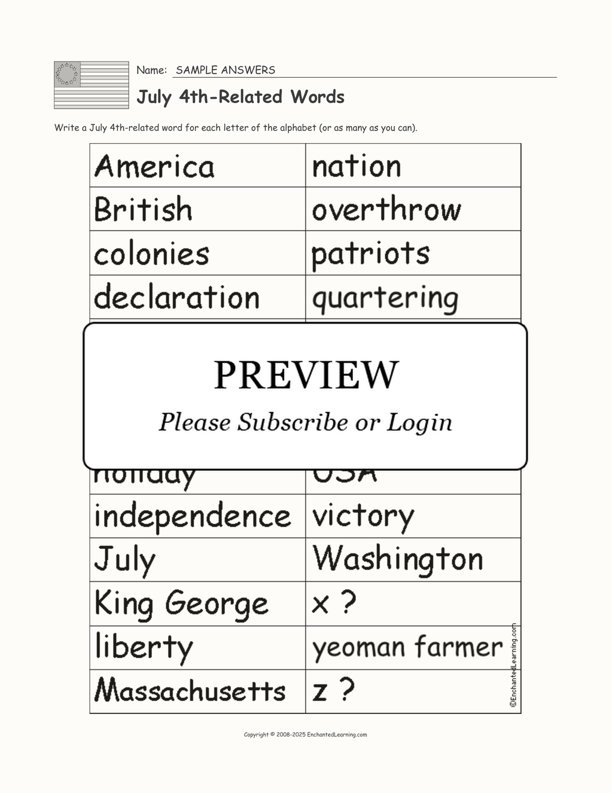 Find a July 4th-related word for each letter of the alphabet, or for as many letters as you can!