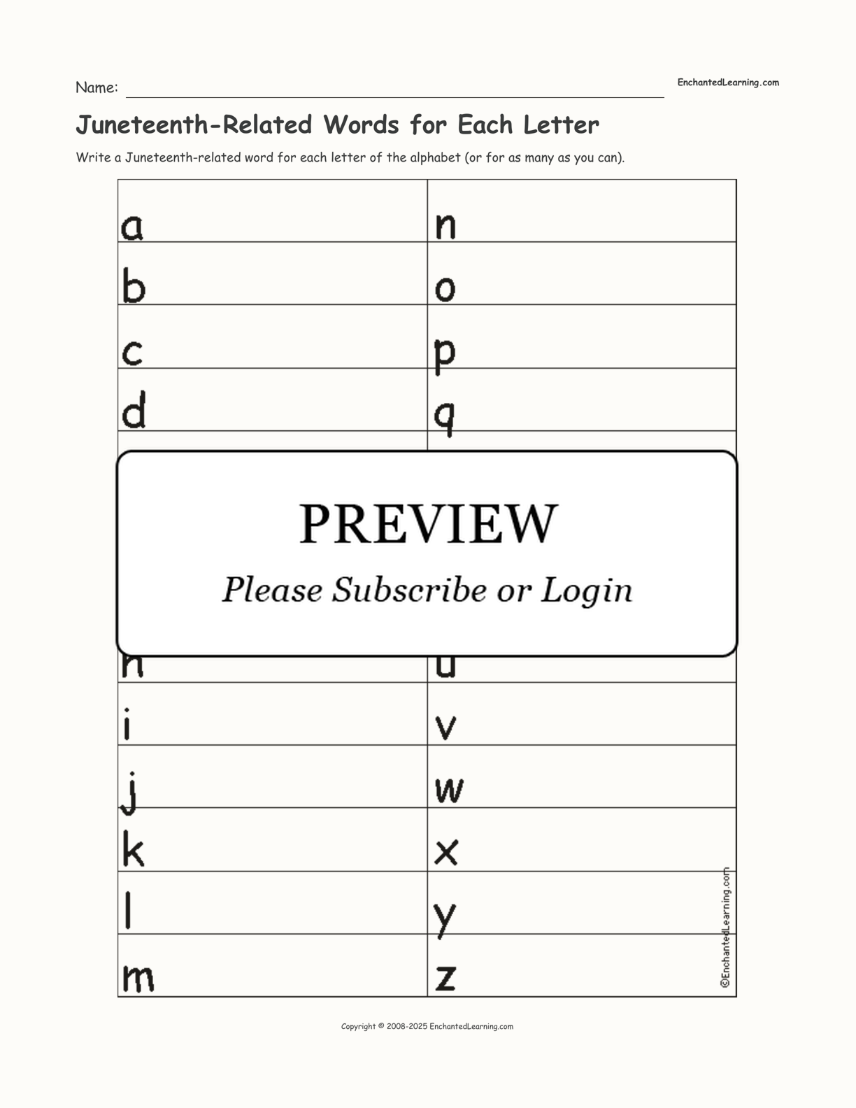Write a Juneteenth-related word for each letter of the alphabet (or for as many as you can).