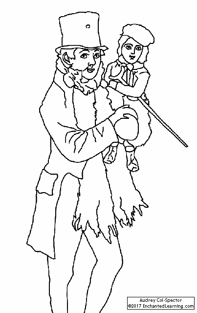 Bob Cratchit holding Tiny Tim, from Charles Dickens’ A Christmas Carol. This is based on an 1867 illustration by Sol Eytinge, Jr., in The Christmas Books.