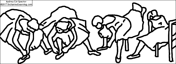 A coloring page based on the painting "Dancers Tying Shoes" by Edgar Degas.