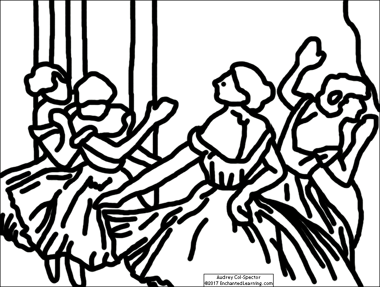 A coloring page based on the drawing "Dancers in the Wings" by Edgar Degas.