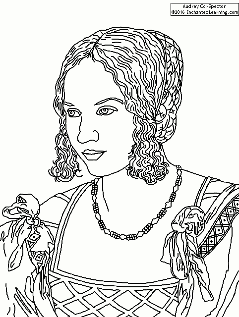 This is a coloring page of the painting "Portrait of a Young Venetian Woman", by Albrecht Dürer.