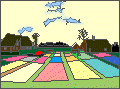 A coloring page based on a Vincent van Gogh painting called Flower Beds in Holland.