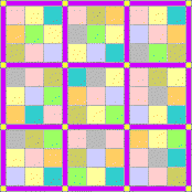 Quilt Block Coloring Page: Nine Square A coloring page based on the quilt block pattern called Nine Square. Or paint it online. |