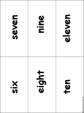 Words for Numbers #2 Bingo Flashcards Each page has six flashcards of number words for the numbers six through eleven. |