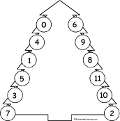 Print out the following pages to make a Christmas tree math bingo game using the numbers 0-11. To play, the teacher can call out numbers from 0-11 or give the students math problems whose answers are the numbers 0-11.