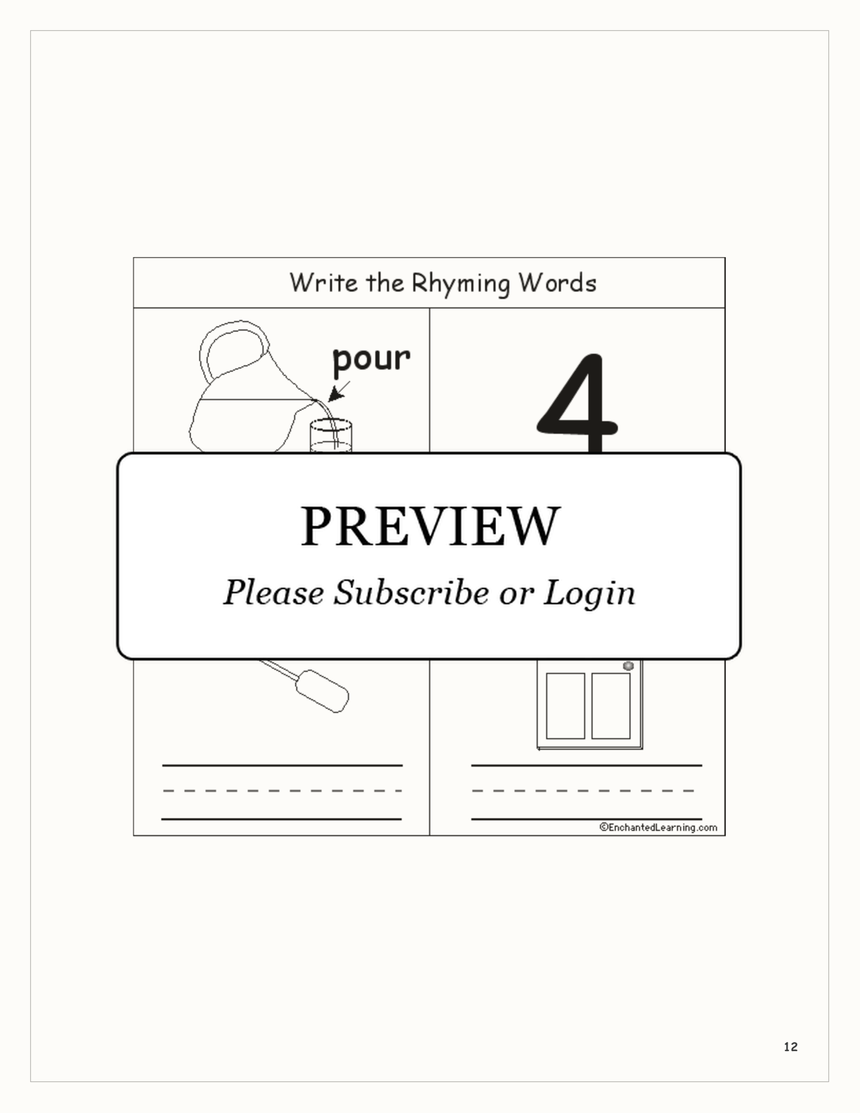 12. Given pour, find four, oar, and door.
