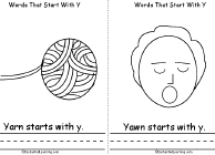This is a short, printable "Words that Start with Y" early-reader book.