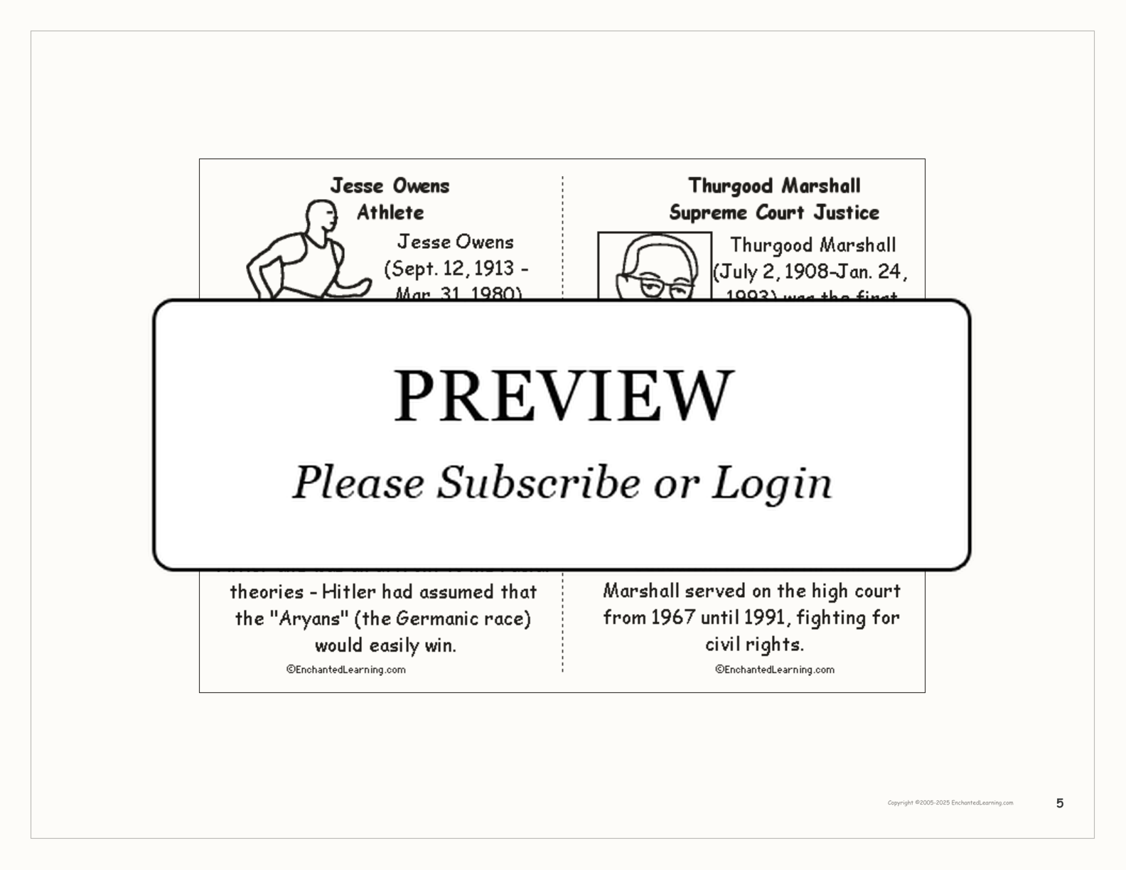 Print the pages to make an early reader book about 11 important African Americans through history.