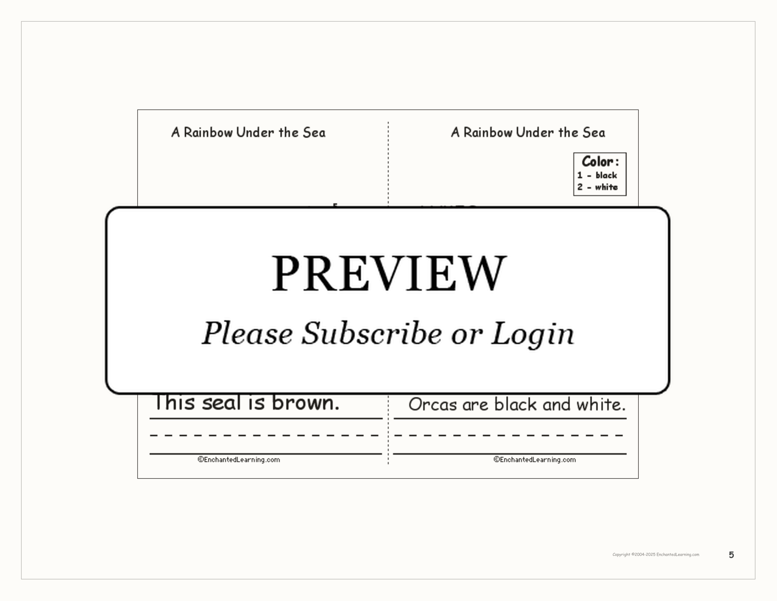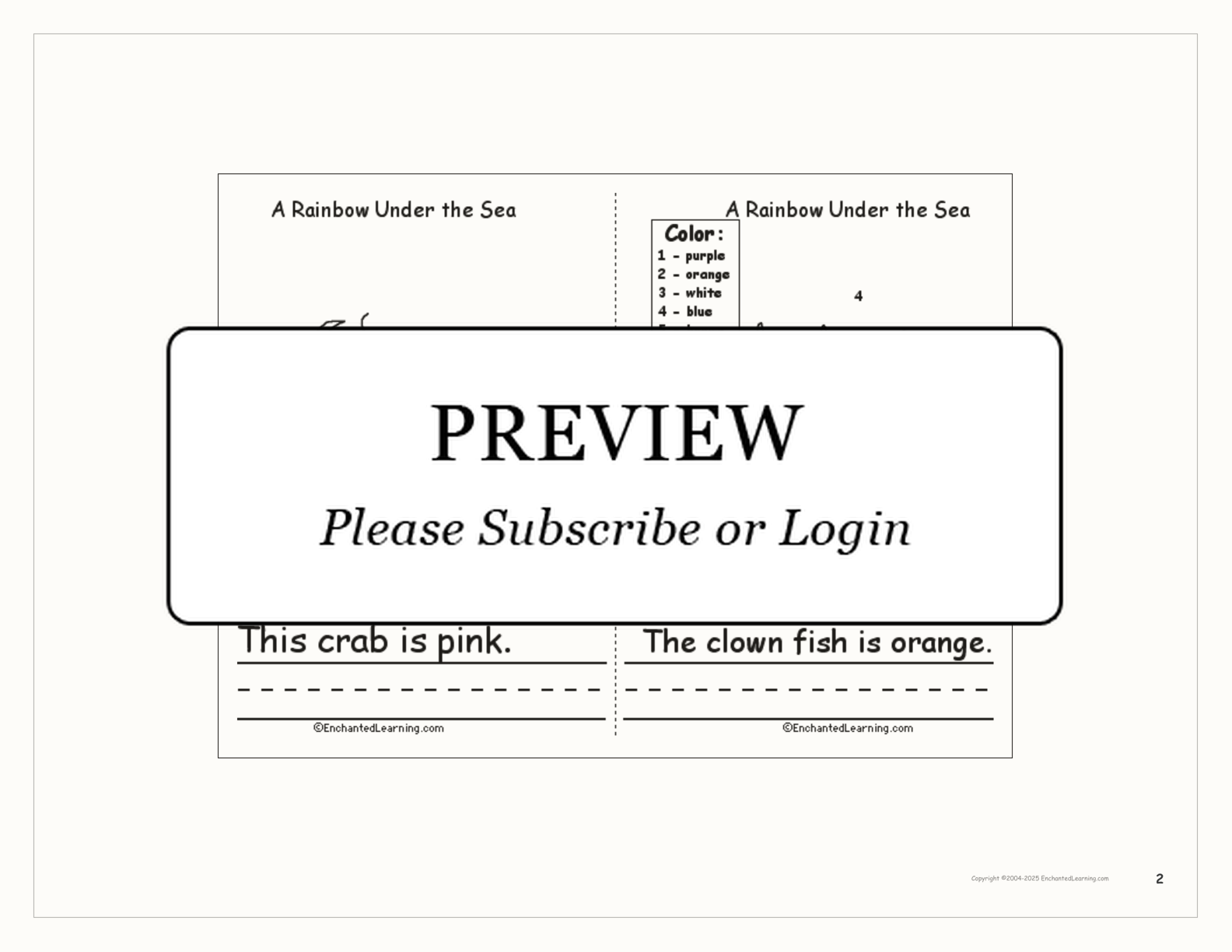 This is a short, printable book about colorful ocean animals for early readers.