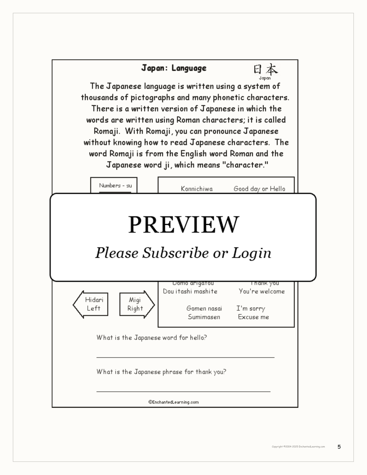 A short, printable book about Japan for fluent readers with pages on the map, flag, language, origami, haiku, and Mt. Fuji.