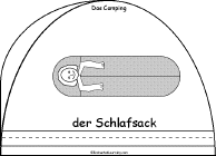 This is a short book about camping words in German to print for early readers - the book is shaped like a tent. The book has pages for the student to cut out, camping gear to color, and German words to copy.