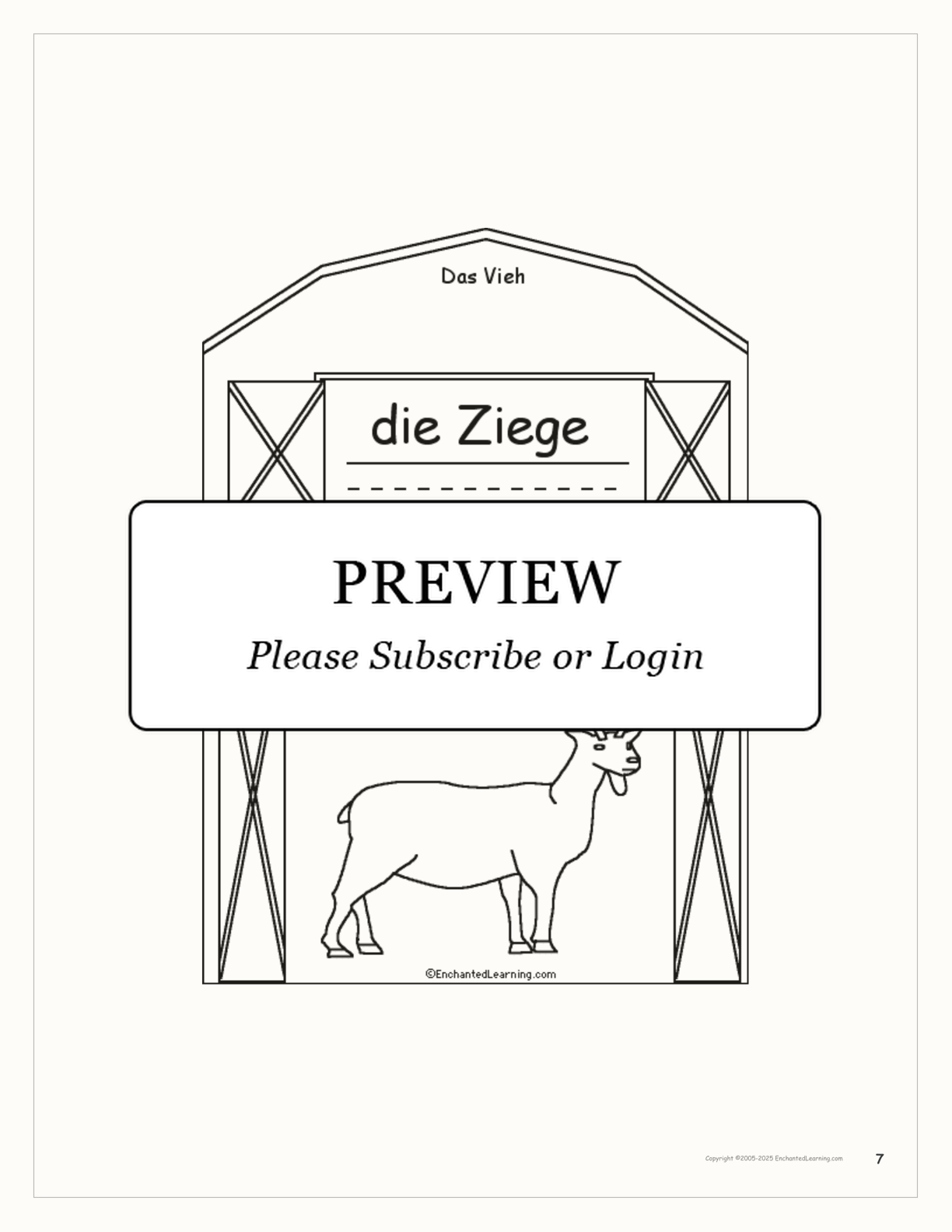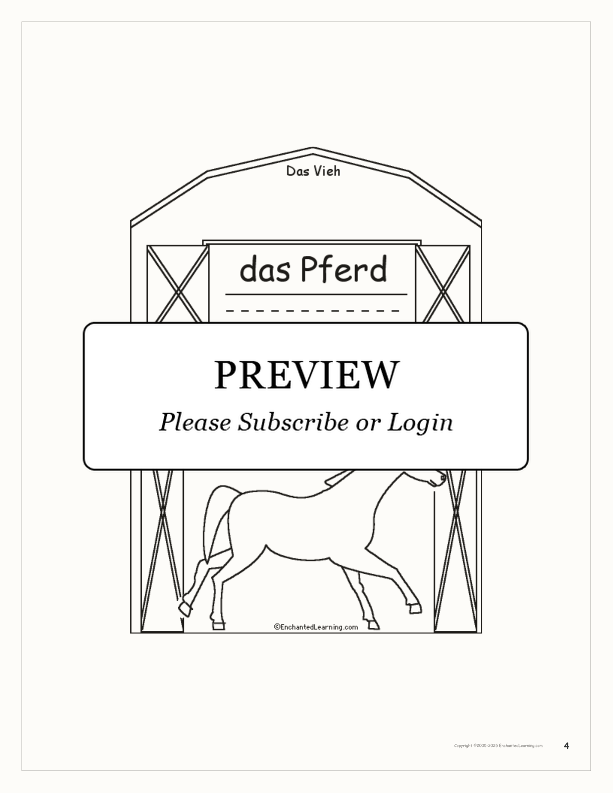 This is a short, printable book about farm animals in German for early readers. The book has pages for the student to cut out, read, and color, with animal names to write.